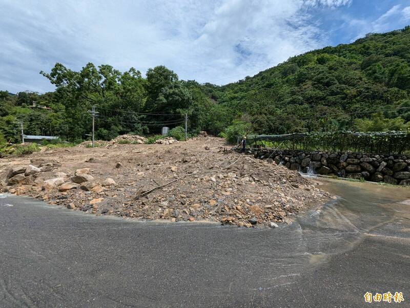 南投縣水里鄉保甲林野溪,因上游土坡崩坍,此次丹娜絲颱風過後又爆發土石流災情。(記者劉濱銓攝)