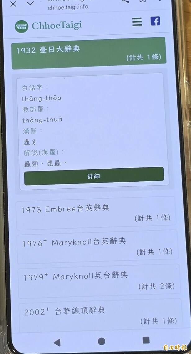 昆蟲的白話字「thâng-thoa」(記者洪瑞琴攝自《ChhoeTaigi 台語辭典⁺》畫面)