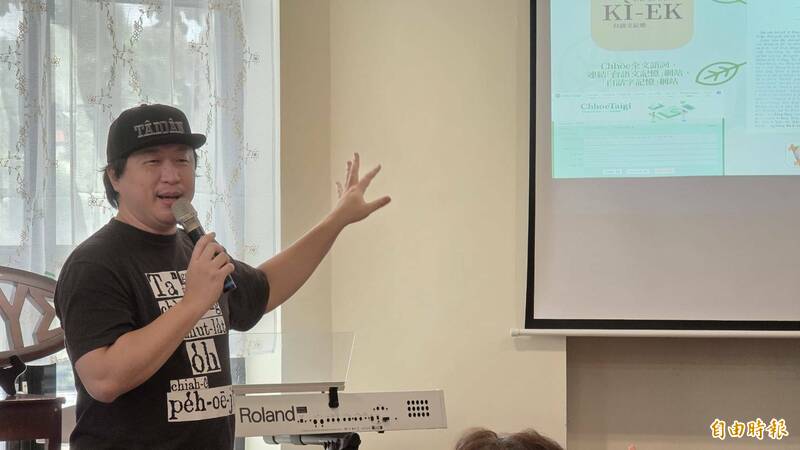 打狗台語文促進協會理事吳家銘說明操作使用特點。(記者洪瑞琴攝)