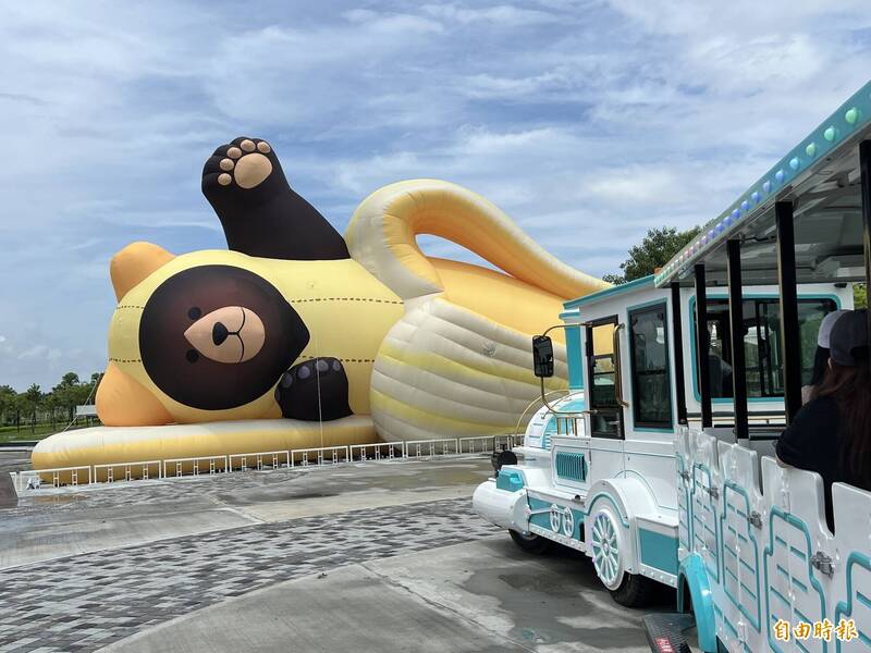 夏日狂歡祭有18米寬的「香蕉酷COOL」大型充氣氣偶現身,十分吸睛。(記者羅欣貞攝)