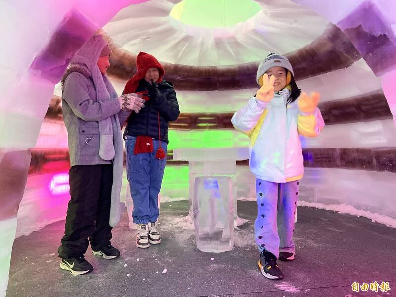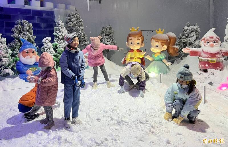 冰宮裡還會下雪,小朋友可以開心玩雪。(記者羅欣貞攝)