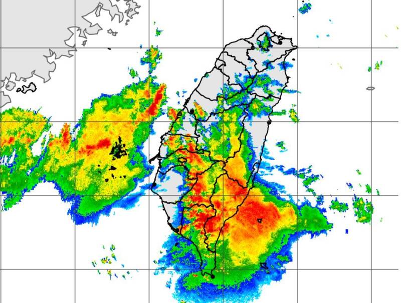 今天(3日)受西南氣流影響,容易出現短延時強降雨,部分地區恐出現局部豪雨等級以上降雨。(圖擷取自中央氣象署)