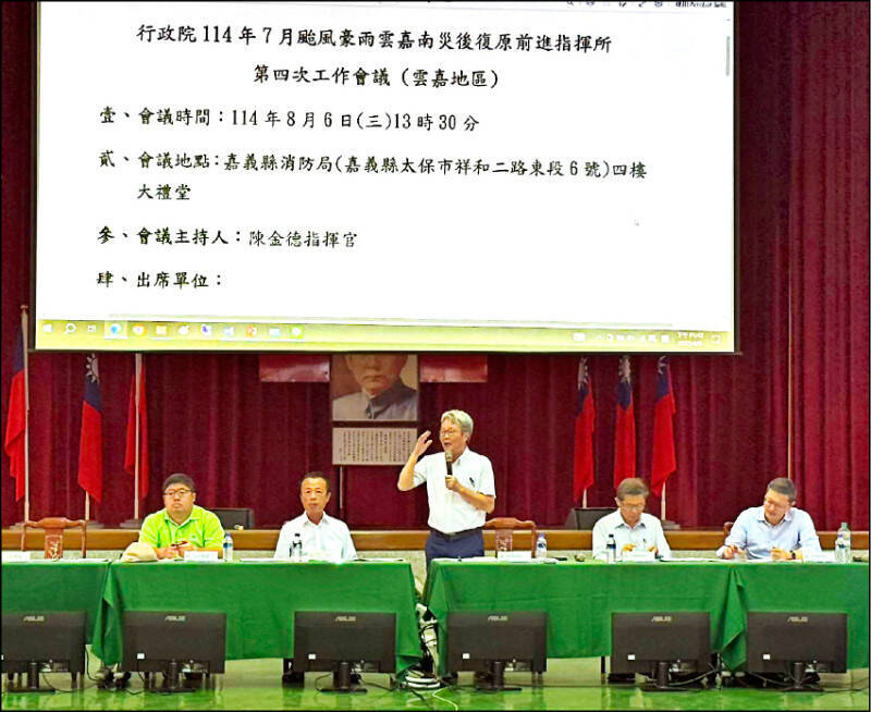 行政院院會今將通過「丹娜絲颱風及728豪雨災後復原重建特別條例」草案,嘉義縣市、台南市、高雄市、屏東縣、雲林縣等,都將納入適用範圍。(行政院提供)