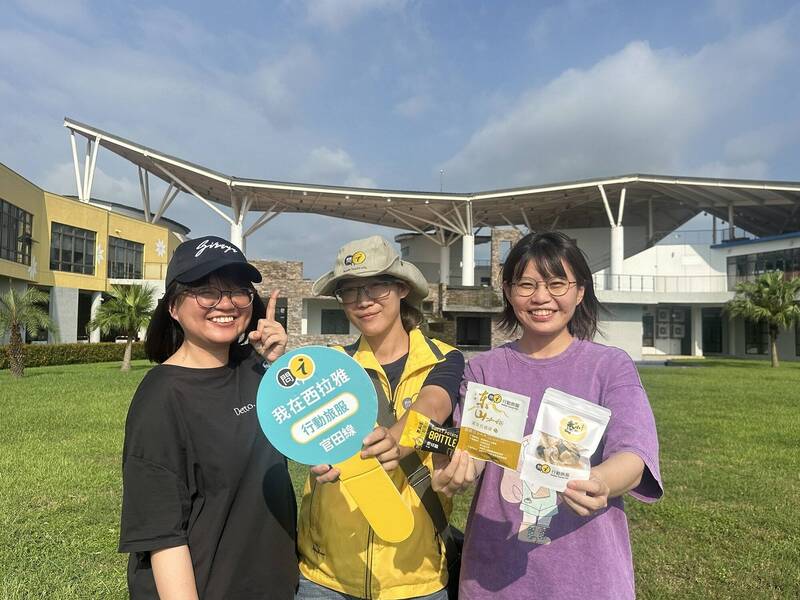 即日起與西拉雅國家風景區管理處行動旅服拍照,追蹤管理處粉絲專頁,就可享有限量好物嘉義縣大埔巧包豆或東山咖啡或瓜瓜園地瓜酥等。(西拉雅管理處提供)