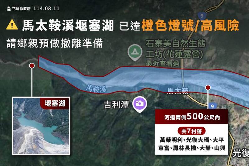 花蓮新堰塞湖亮潰決橘燈!馬太鞍溪下游7村 最快明強制撤離