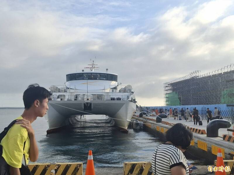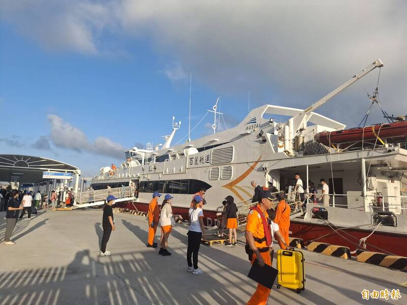 藍鵲輪接駁運輸,將105位颱風滯留金門旅客送回台灣。(記者劉禹慶攝)