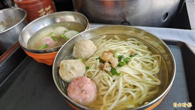 彰化貓鼠麵最招牌的湯麵與丸子。(記者劉曉欣攝)