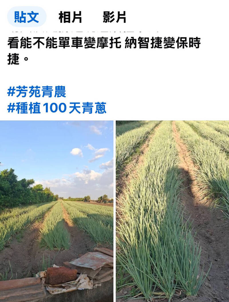蔥農即將收成,臉書自嗨「原本開納智捷,要換保時捷」。(記者顏宏駿翻攝自農民臉書)