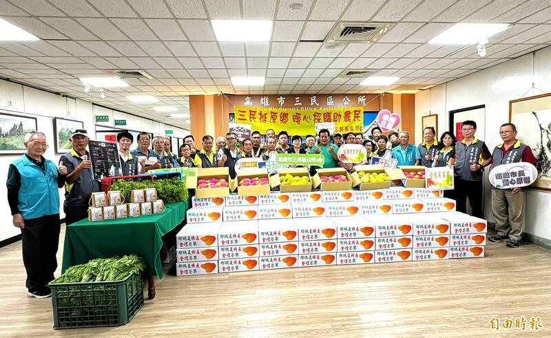 0728豪雨重創高雄市桃源區、那瑪夏區,正值金煌、西施芒果產季,由於道路不便和產量嚴重受損,盤商沒有上山收購,導致農民一年僅收成一次的農產恐賣不出去,高雄市府發動各機關支援,三民區公所與里長聯誼會也為原鄉送暖,採購大量芒果、咖啡、龍鬚菜等,其中一批今(21)日送抵公所,讓那瑪夏區長感動地說,「讓農民看到一道曙光」。