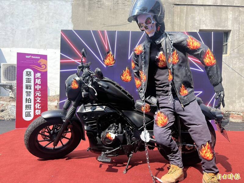 虎尾中元文化祭活動現場有惡靈戰警拍照區。(記者黃淑莉攝)