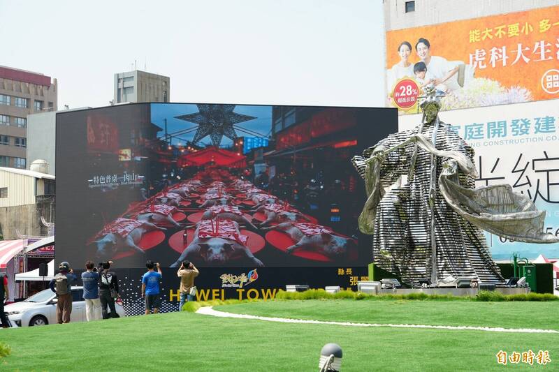 雲縣府、虎尾公所斥資1100萬元打造的超大裸視3D螢幕。(記者黃淑莉攝)