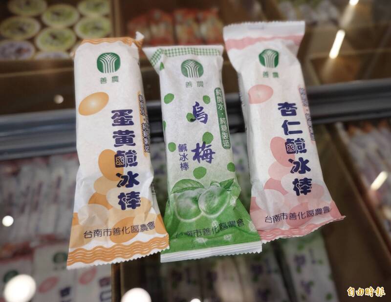 善化區農會有蛋黃、烏梅、杏仁等3款鹹冰棒。(記者吳俊鋒攝)