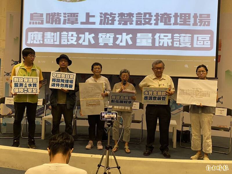 環保團體質疑鳥嘴潭水質檢測竟驗出稀有金屬,要求中央與地方嚴格把關,避免污染危及民生用水。(記者張聰秋攝)