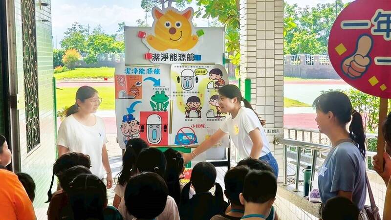 興安國小以「潔淨能源艙」活動,教導新生學習如廁禮儀。(興安國小提供)