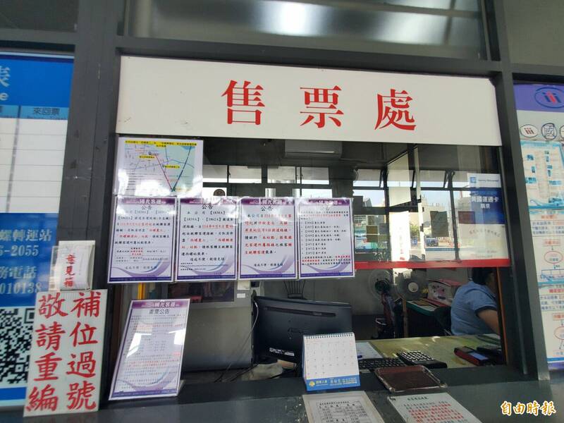 西螺轉運站售票處張貼停駛公告。(記者黃淑莉攝)