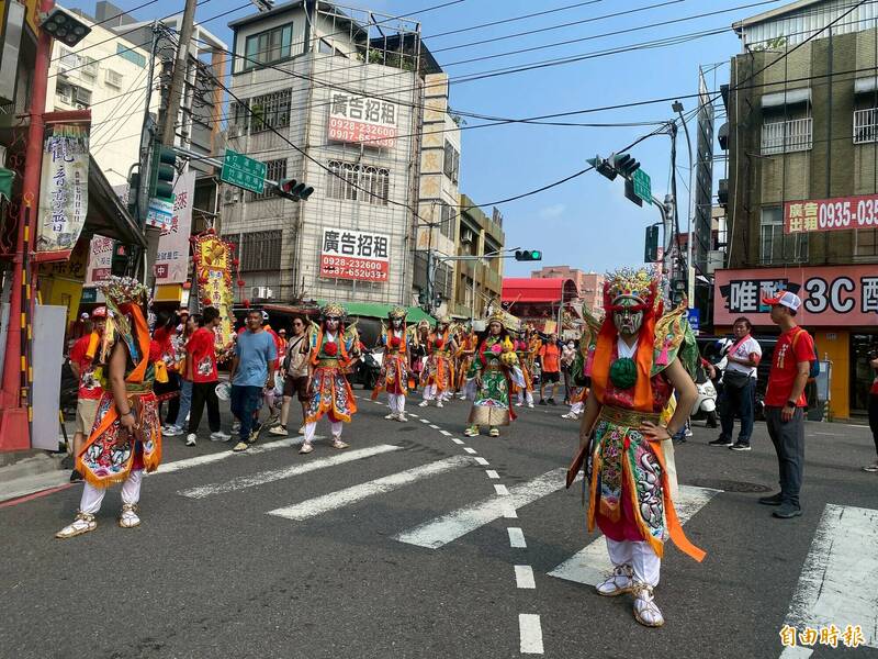 各地陣頭參與遶境,且有中國來的宮廟表演英歌舞。(記者洪美秀攝)