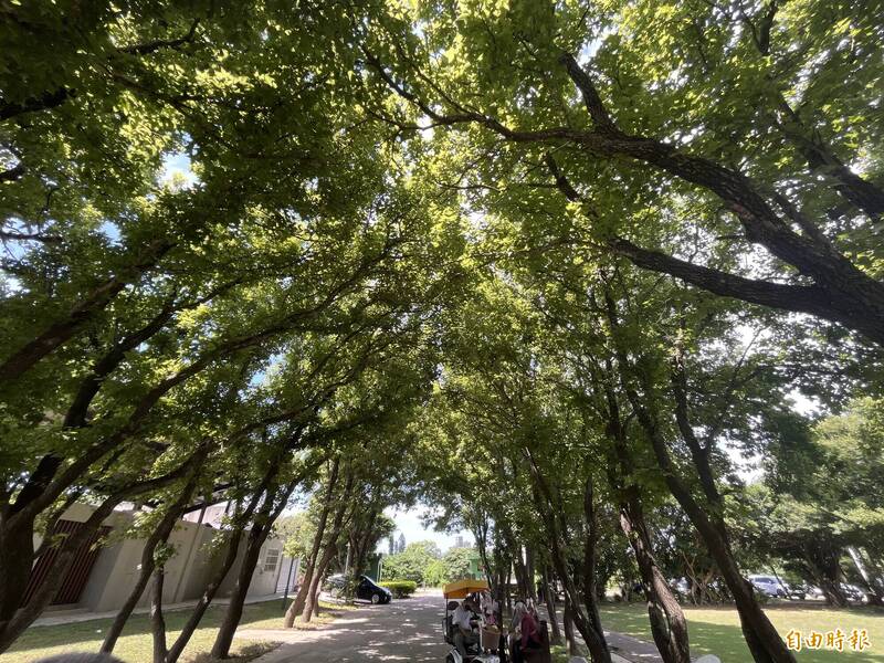 營區內保留了數十棵楓香、樟樹等大樹而形成綠林大道。(記者廖雪茹攝)