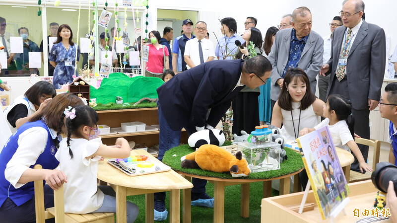 新北捷運公司董事長林祐賢表示,設立幼兒園滿足員工托育需求,也回應鄰近社區的托育期待。(記者黃政嘉攝)