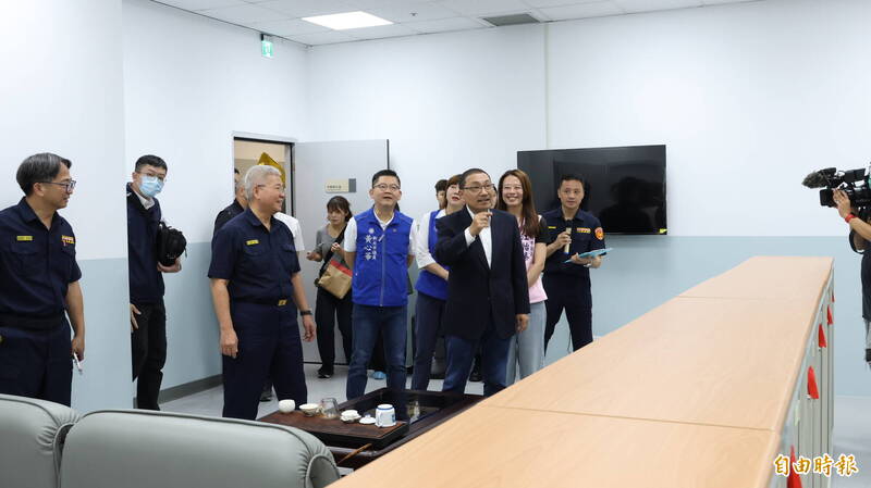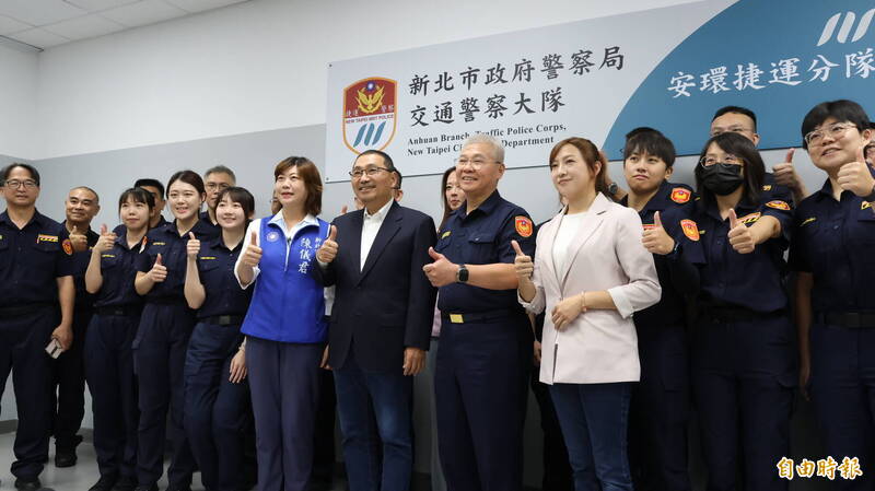 新北市政府警察局交通警察大隊安環捷運分隊進駐南機廠,新北市長侯友宜參觀視察辦公室。(記者黃政嘉攝)