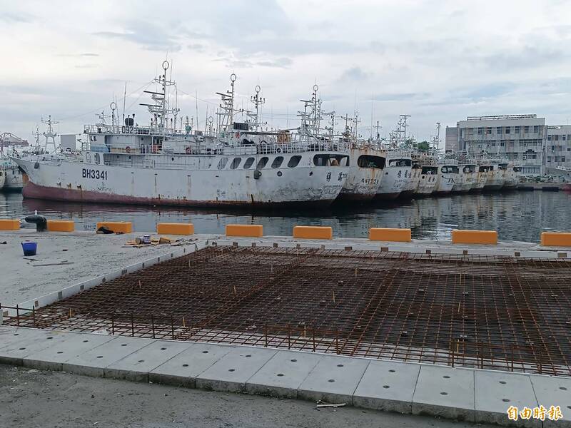 前鎮漁港漁船併靠嚴重,若斷纜漂流恐撞毀施工中的碼頭(下)。(記者洪定宏攝)