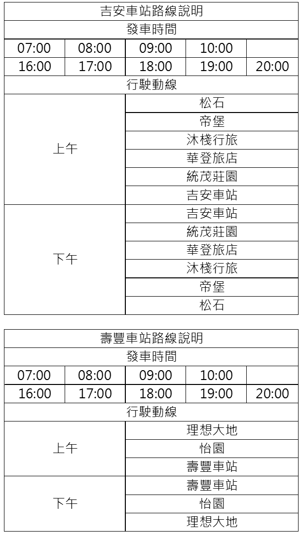 吉安車站及壽豐車站路線停靠站。(公路局提供)