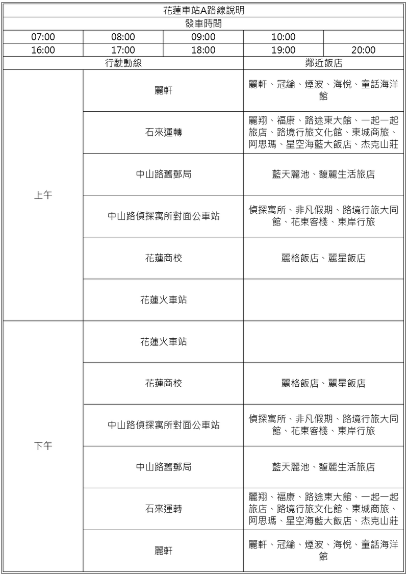 花蓮車站A路線停靠站。(公路局提供)