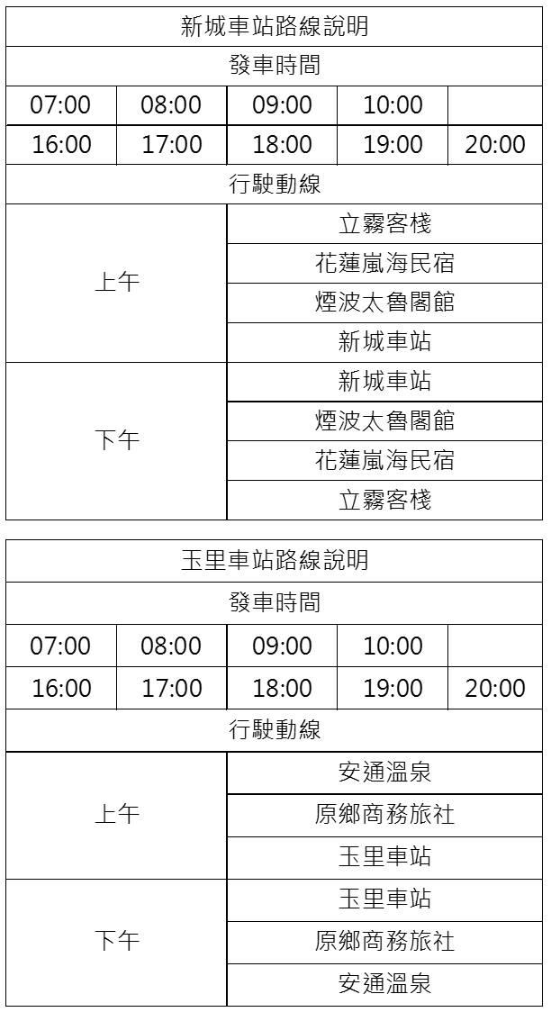 新城車站及玉里車站路線停靠站。(公路局提供)