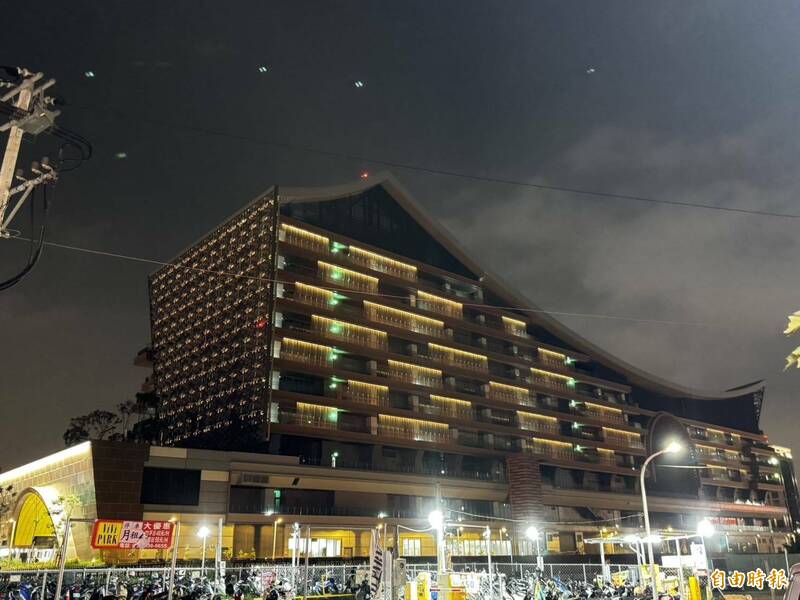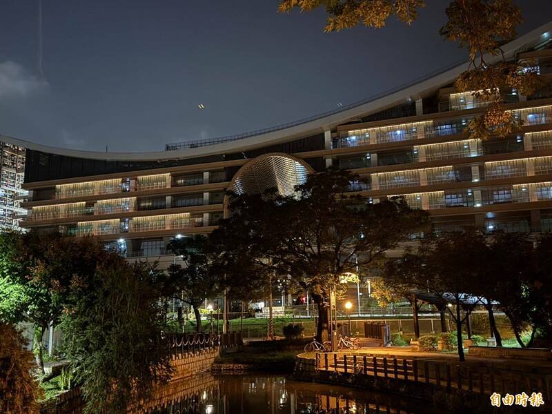 「空中鳳城」點亮迎賓,護城河曹公圳環繞其中。(記者陳文嬋攝)