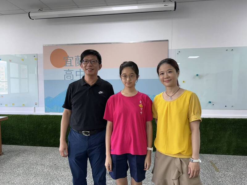 宜蘭高中校長洪光賢(左起)和林冠伶、指導老師楊明雯合影。(宜蘭高中提供)