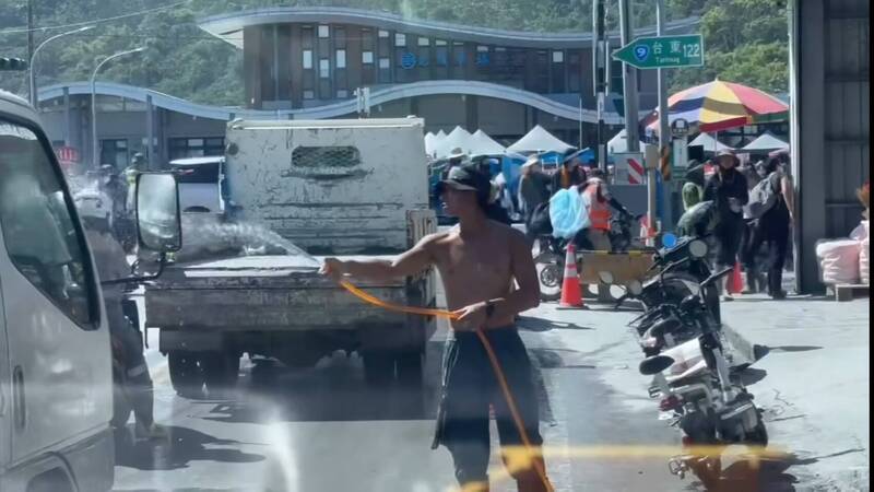 一位女網友週日(5日)下午在Threads上分享影片和照片,可以看到一名戴漁夫帽、打赤膊的小鮮肉,正在拿著水管為來到災區支援,難免沾上泥塵的車子洗車,甚至機車騎士的安全帽也能洗,影片中只見他毫不怕生的走向一名機車騎士,拿著抹布就幫忙擦拭,舉動莫名讓人感覺有些可愛,擦拭完後機車騎士還向這位帥哥點頭致意。