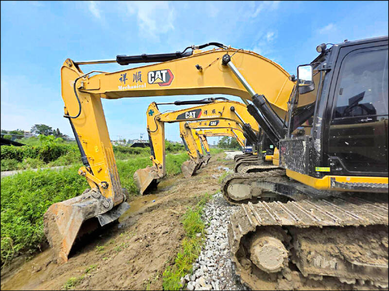 美濃大峽谷盜砂回填弊案,檢警發動第三波搜索,已有三幫人涉案,彼此互不相識。圖為橋檢查扣怪手。(橋檢提供)