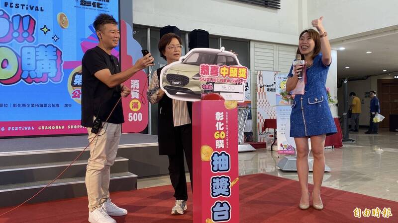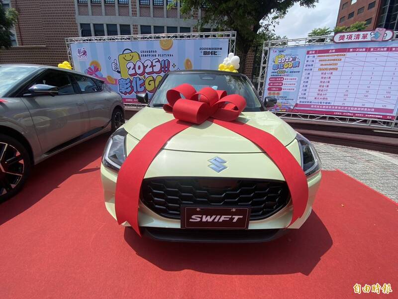 2025彰化GO購首波抽獎抽出全新SUZUKI NEW SWIFT汽車1台,市值約70多萬元。(記者張聰秋攝)