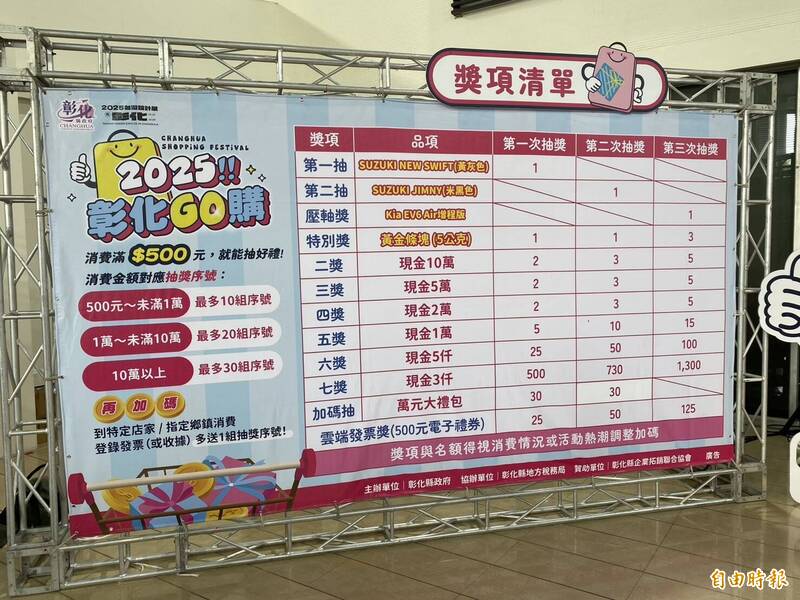 只要在縣內800多家合作店家消費,或參加「2025台灣設計展」、「彰化馬拉松嘉年華」、「媽祖祈福文化節」等活動,消費達標都能多拿一組抽獎序號。
