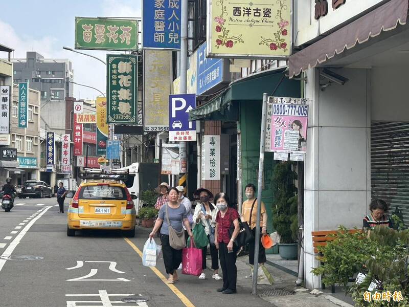 許多民眾在苗栗市中正路南苗市場站牌痴痴地等著公車到來。(記者彭健禮攝)