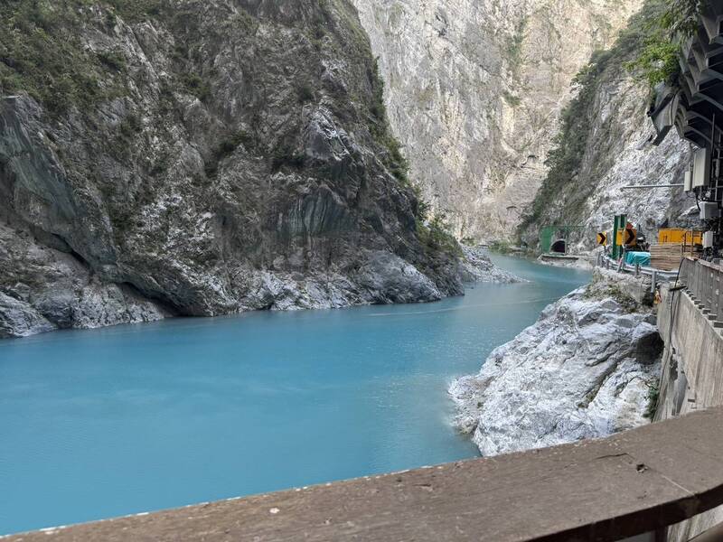 今天下午3點堰塞湖距離燕子口步道約2公尺。(記者花孟璟攝)