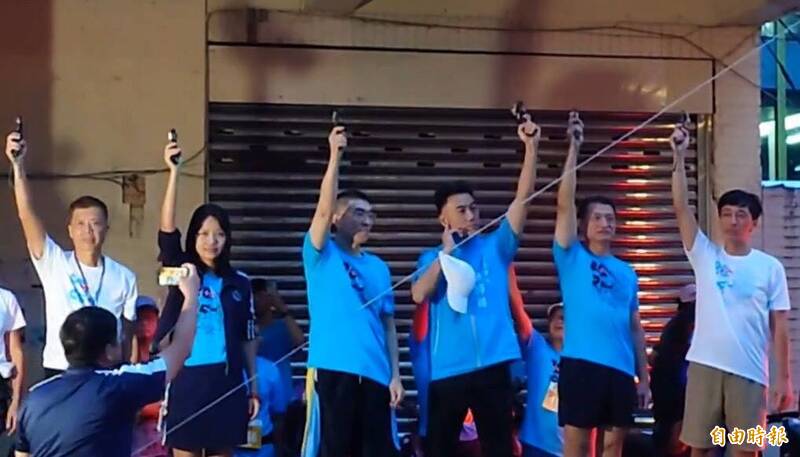 基隆市半程馬拉松今晨5點50分鳴槍起跑,圖由左至右依序為基隆好馬長跑協會理事長樊沛文、基市教育處長徐嬿立、基市長謝國樑、立委林沛祥。(記者俞肇福攝)