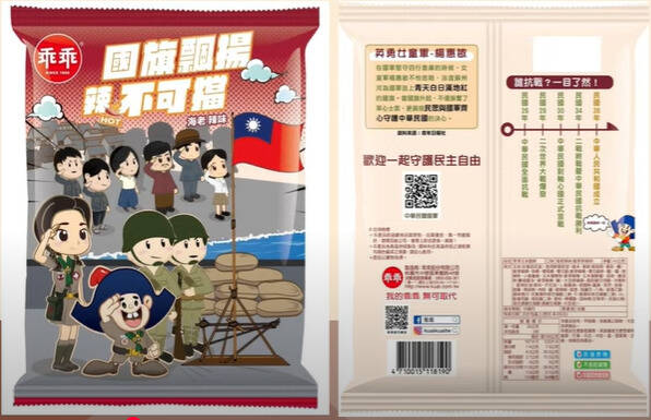 也有網友列出台灣乖乖先前與國防部合作的聯名款,指出嘗試以此向中國「中央網信辦(國家互聯網信息辦公室)」舉報盜版乖乖涉嫌「支持台獨」。(國防部提供)