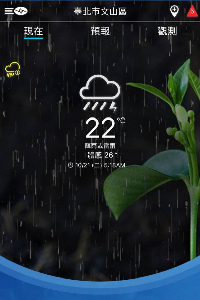 「林老師氣象站」表示,今日因風神颱風逐漸遠離,共伴效應在今日白天就會慢慢式微;取而代之的是東北季風及低壓帶,預估在今晚至明日上半天,氣壓梯度將會達到最大,風速也將增至最強,請特別加強防範。至於今日降雨部份,大台北、基隆北海岸及宜蘭地區仍有持續性強降雨的出現機會,評估有豪雨等級以上雨勢的機會非常大,也請特別小心防範。