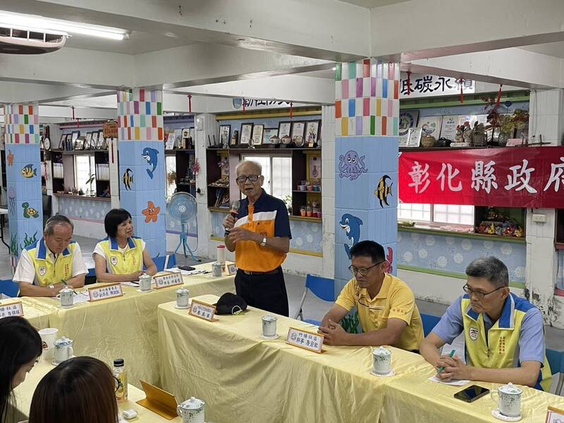 高齡85歲的廖英華,在治安會議分享如何成立漂鳥隘勇隊,及夜間護農的成果。(芳苑警分局提供)