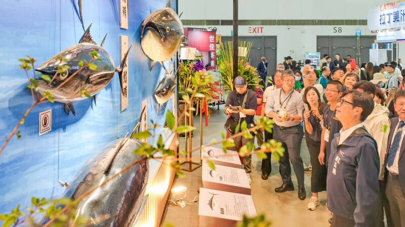 陳其邁參觀鮪魚公會展區。(高市海洋局提供)