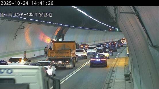 24日14時40分,國3南向中寮隧道發生2小客車追撞事故佔用內線車道,回堵3公里。(高公局提供)
