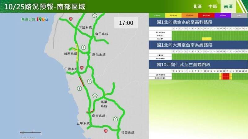 光復節連續假期第二天,南部區域國道易塞車路段。(高公局提供)