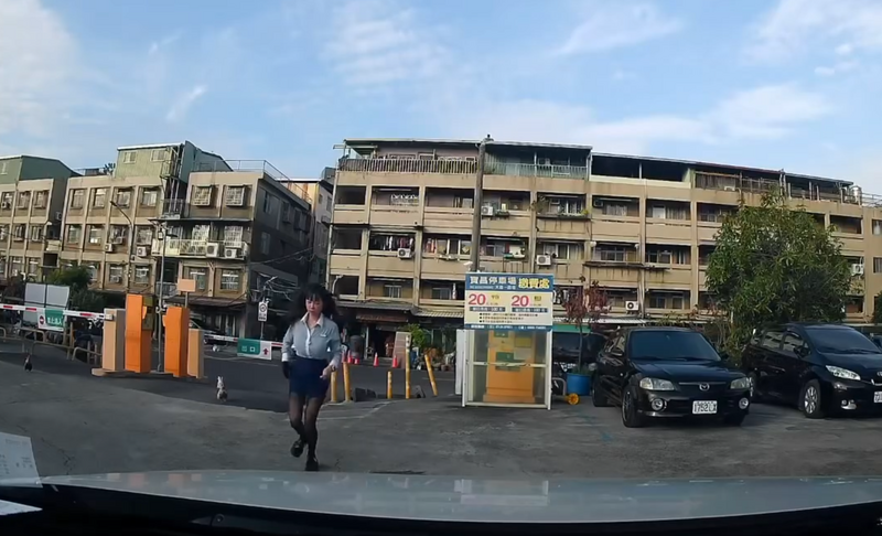 身穿黑絲襪的辣妹業務在停車場準備繳費,一轉身就被日本矮雞盯上,被狂追數公尺。(圖擷取自Thread/@yian422)