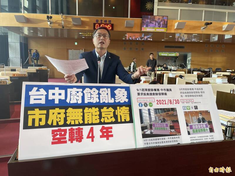 林德宇說,2021年他就曾在議會質詢台中設高速發酵的廚餘處理場,當時台南市、新竹市都在做,結果這次非洲豬瘟疫情傳出後,台南這次1天可以處理40噸的廚餘,台中4年過後高速發酵場仍掛零,「荒腔走板,空轉4年」,假如台中當時有做,今天就不會出現「廚餘之亂」,引起更大的恐慌。