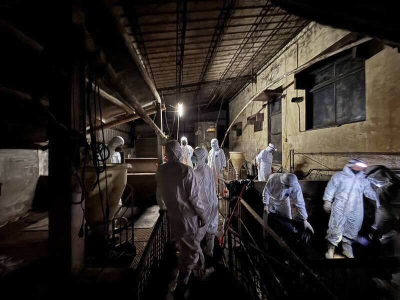 台中梧棲養豬場爆發非洲豬瘟疫情,病毒基因定序今(31日)出爐。圖為中央今加派國防部50名化學兵協助清消台中梧棲非洲豬瘟案場。(農業部提供)