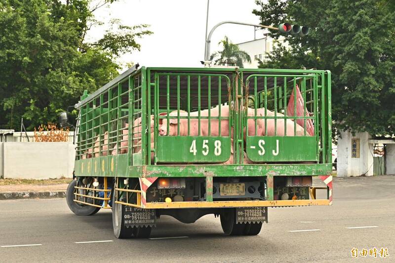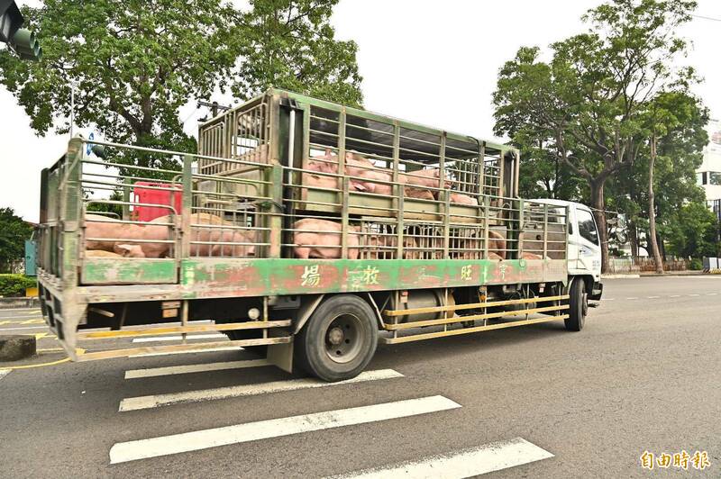 非洲豬瘟解禁,路上可見活體豬隻運送。(記者李惠洲攝)