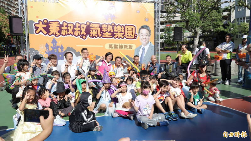 吳秉叡表示,因長期關心兒童權益,近年來都在萬聖節前後舉辦活動,除了為節慶增添熱鬧氛圍,也可透過氣墊樂園營造親子關係,讓大、小朋友同樂也增進彼此感情,今年共規劃2場活動,10月18日已在新莊區塭仔底濕地公園辦過1場,第2場日前因大雨順延至今天,歡迎民眾把握時間到場遊玩。