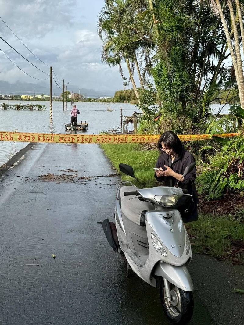 宜蘭暴雨,五結鄉五十二甲濕地一帶昨天一片汪洋,路面水深及膝。(圖取自張亮軒臉書)