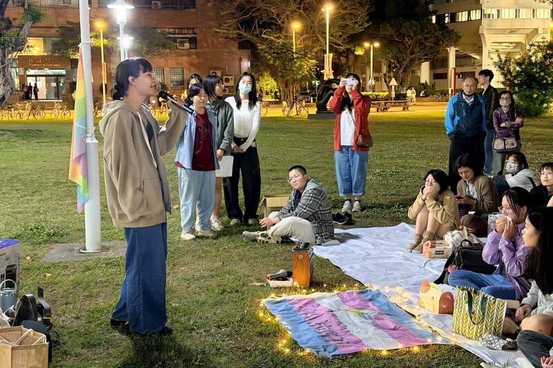 國立成功大學「國際跨性別悼念日」點燈活動邁入第12年,學生、教職員與社區夥伴手持燭光默哀,悼念因性別認同遭受暴力而失去生命的跨性別者,也象徵支持多元性別、期盼校園與社會更友善。