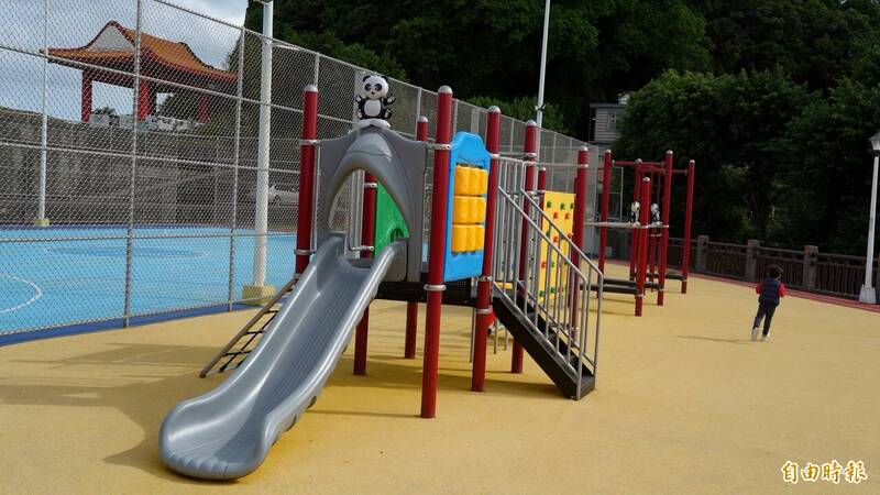 基隆太白里白米甕籃球場暨兒童遊戲場打造全齡友善休閒空間。(記者盧賢秀攝)
